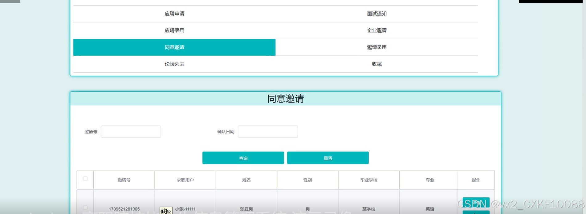 (11)同意邀请:处理学生对企业发送的邀请的处理情况。
