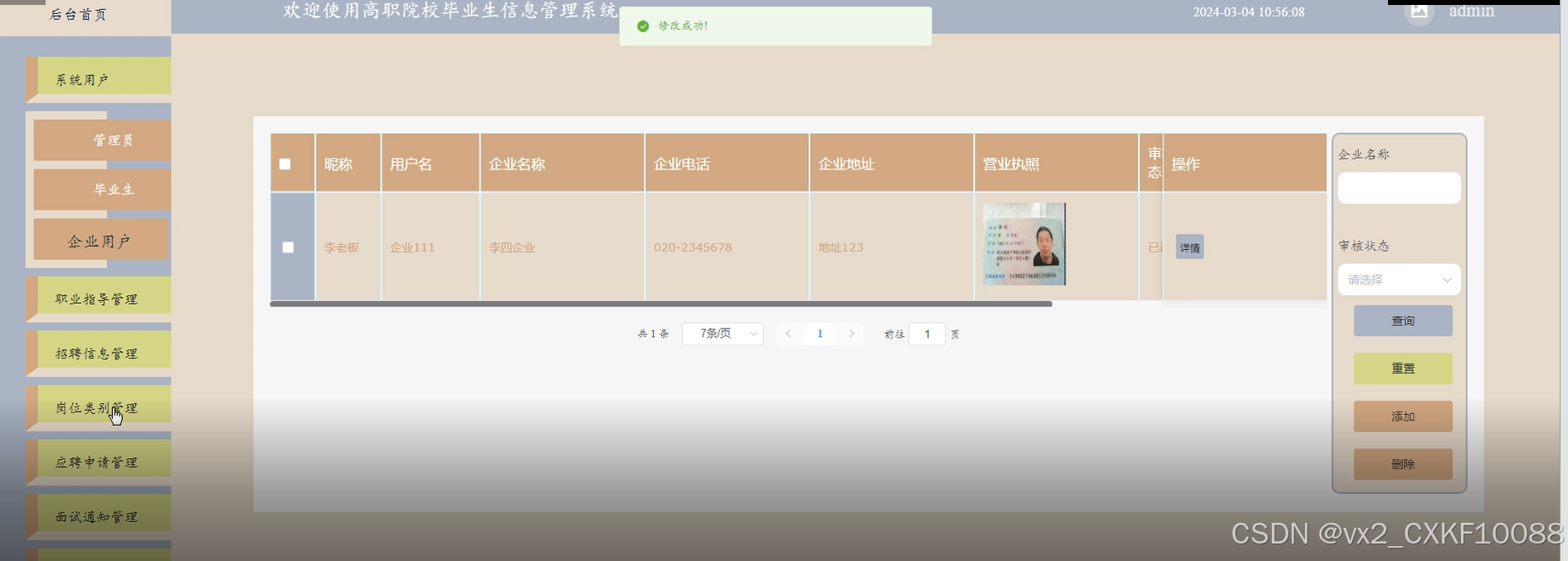 (4)岗位类别管理:管理不同岗位的类别信息,方便学生查找和筛选。