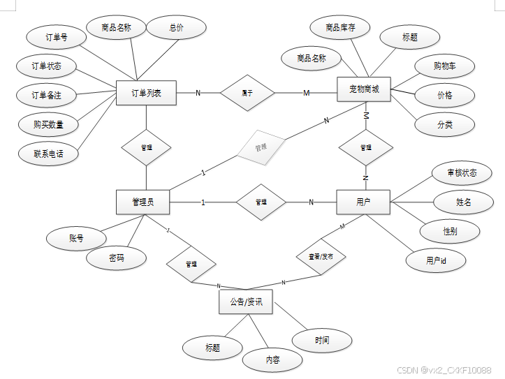 下面是整个宠物店管理系统中主要的数据库表总E-R实体关系图。