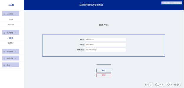 - 用户注册登录:用户注册为用户并登录宠物店管理系统;用户对个人信息的增删改查,比如个人资料,密码修改。