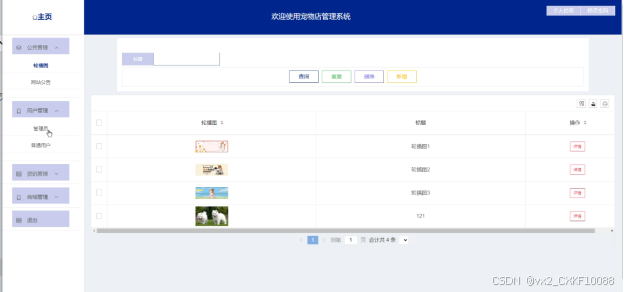 管理员可以对轮播图进行提交,还可以进行查询、重置、删除、添加等操作。界面如下图4-9所示。
