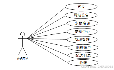 通过2.3功能的分析,得出了本宠物店管理系统的用例图: