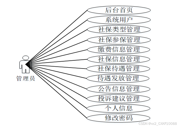 通过3.3功能的分析,得出了本市社保局社保信息管理与分析系统的用例图: