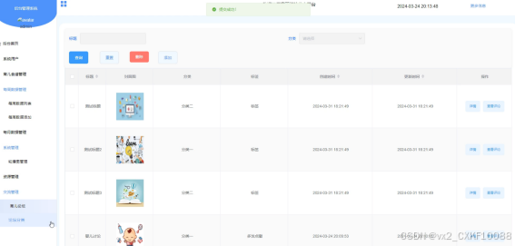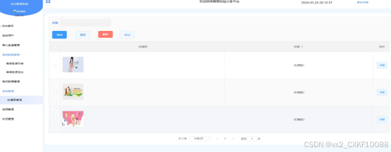 当管理员点击“系统管理”这一菜单的时候,会出现轮播图这个子菜单,可以对这个模块进行增删改查操作;界面如下图4.8所示。