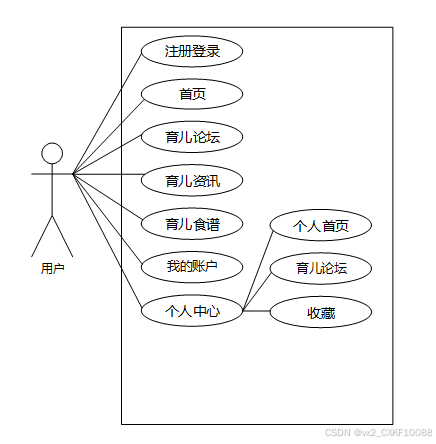 育婴经验分享平台中普通用户角色用例图如图2.1所示: