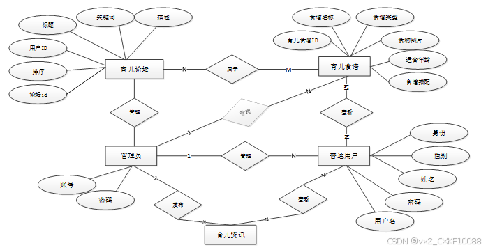 下面是整个育婴经验分享平台中主要的数据库表总E-R实体关系图。
