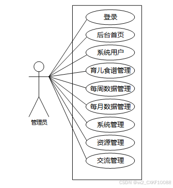 育婴经验分享平台中管理员角色用例图如图2.2所示: