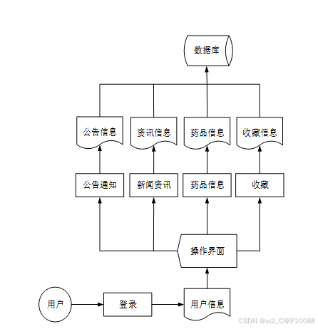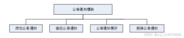 药店信息管理系统中需要存储不少公告通知,其模块功能结构,具体的结构图如下: