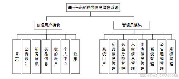 药店信息管理系统我划分为了普通用户管理模块和管理员模块两大部分。