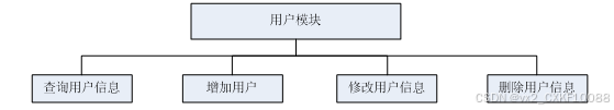 本系统的用户包括后台管理员和前台用户,两种用户模块的功能基本是相同的,用户比管理员多了一个注册功能,所以以用户模块的结构图为例进行分析,用户模块结构图为例进行分析,如下图: