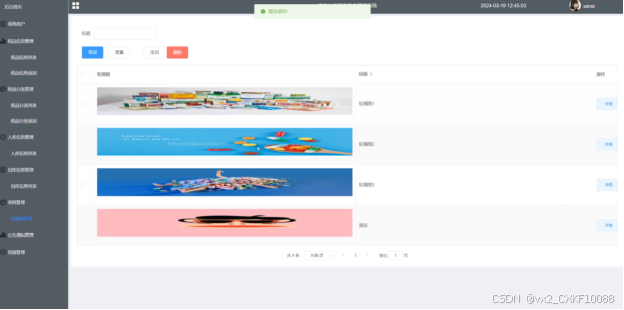 管理人员在“系统管理”这一菜单下是可以对药店信息管理系统内的轮播图进行添加修改的,其管理界面如下图4-9所示。