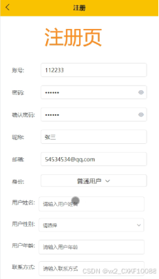 用户填写注册信息,包括用户名、密码、邮箱等,提交注册请求。后台系统接收注册信息,验证信息的有效性和唯一性,如用户名是否重复,邮箱格式是否正确等。验证通过后,将用户信息存储至用户数据库中,并生成用户唯一标识。注册成功后,用户即可通过相应用户名和密码进行登录,并享受个性化的课程推荐和学习服务。注册过程中需要确保用户信息的安全性,如采用加密传输等措施。同时,系统需要记录用户的注册状态,以便提供个性化的服务和保障用户数据安全。界面展示如下图4.1所示。
