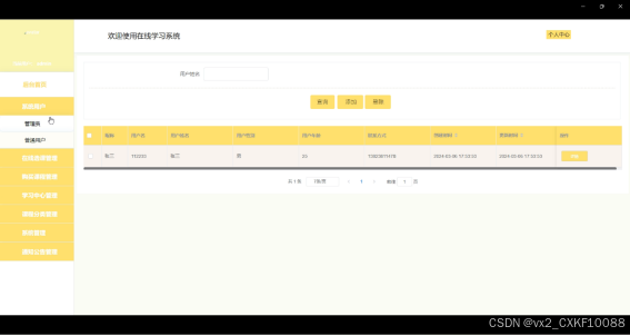 - 购买课程管理:管理员可以管理用户的课程购买情况,包括订单管理、支付状态等。