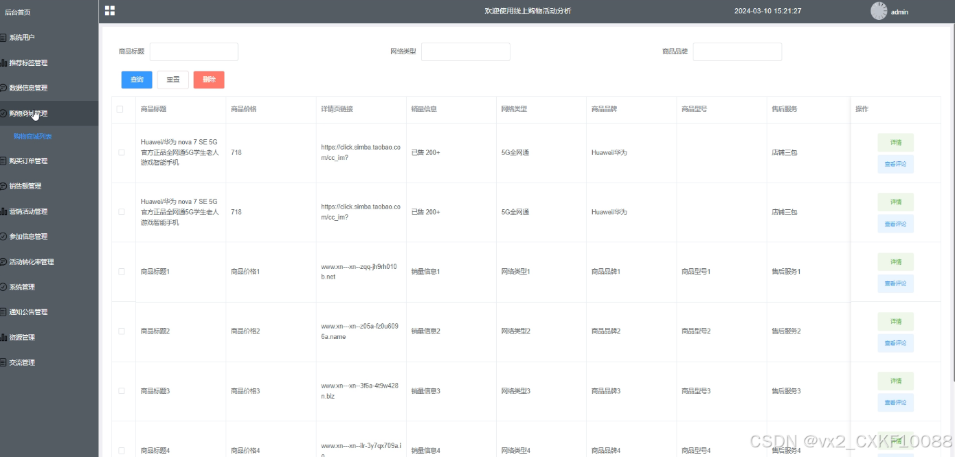 - 购物商城管理:管理员点击购物商城管理,可以查看购物商城列表、购物商城添加,支持增删改查。