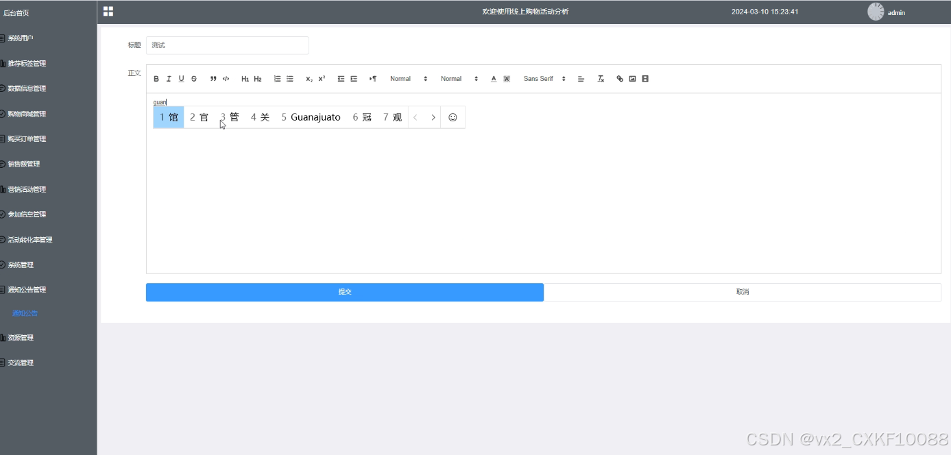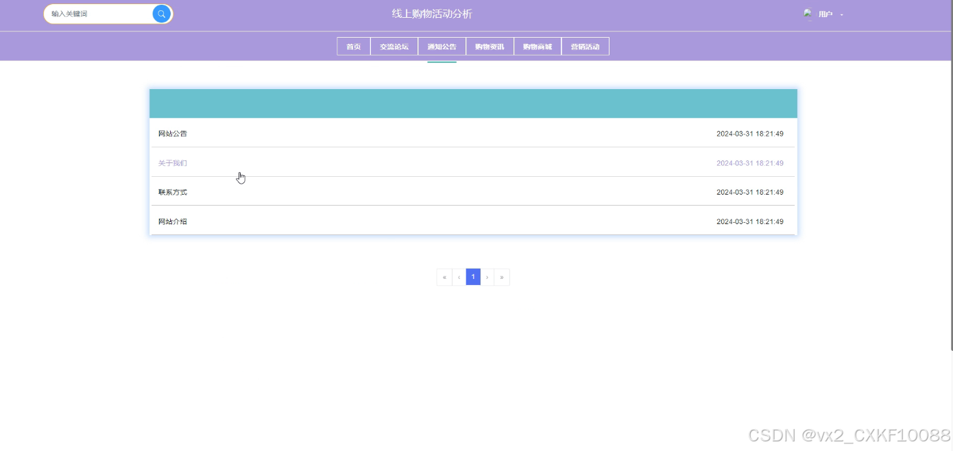基于大数据的线上购物活动分析中的管理人员是可以对维护,管理,发布通知公告信息,界面如下图所示。
