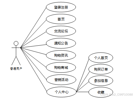 - 首页:用户登录后进入首页,可以查看最新的通知公告、购物资讯推荐、购物商城推荐、营销活动等信息。