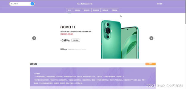 - 通知公告:展示系统发布的网站公告、关于我们、联系电话、网站介绍等,用户需要及时关注以了解商城的动态。