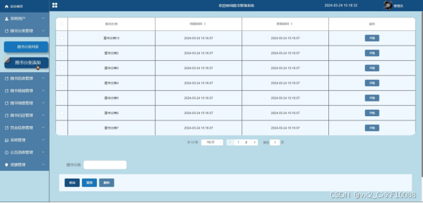 - 图书分类管理:管理员可以对所有的图书进行分类管理。同时可以支持增删改查的操作。