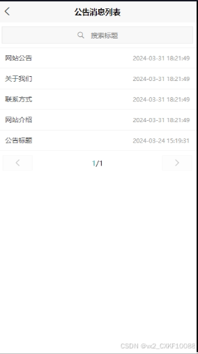 - 公告消息管理:管理员可以对前台发布的所有公告信息进行管理,同时可以支持增删改查的操作。