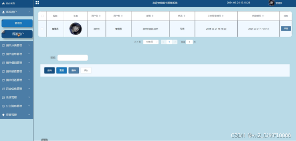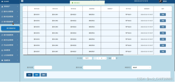 - 图书借阅管理:管理员可以对所有的图书借阅信息进行管理。