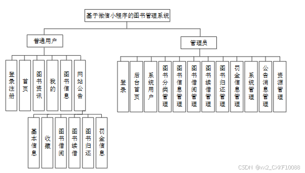 基于微信小程序的图书管理系统我划分为了普通用户和管理员模块两大部分。
