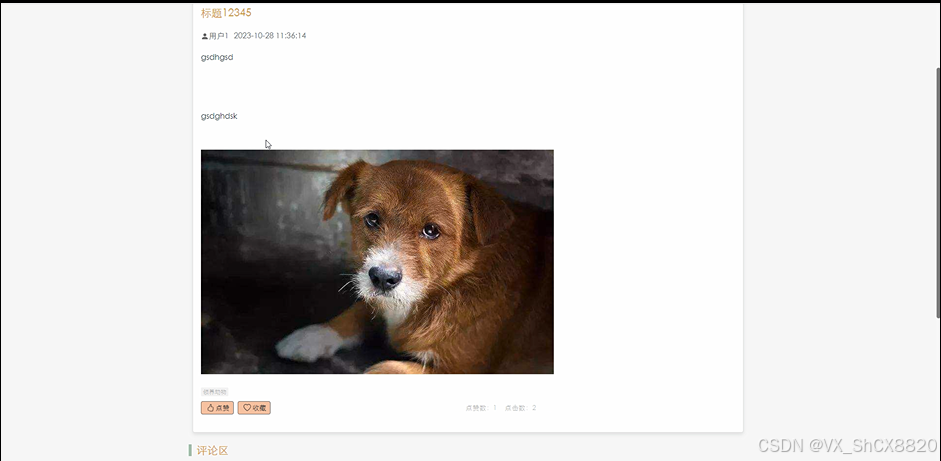 当用户点击“社区动态”这一菜单按钮,会显示管理员在后台发布的所有的社区动态信息,可以查看详情,进行收藏、点赞、评论、发布动态等,社区动态界面如下图4.8所示。