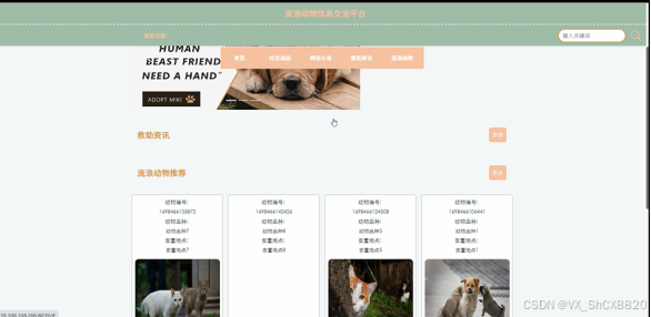 Specifically, in terms of system design, SSM architecture is adopted, and MySQL database is used in the backend, making it an excellent website for rescuing stray animals.