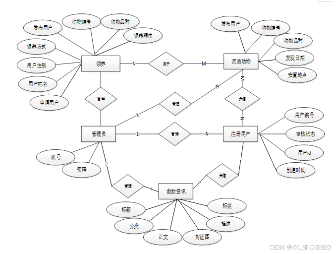 流浪动物信息交流平台的总E-R图如下: