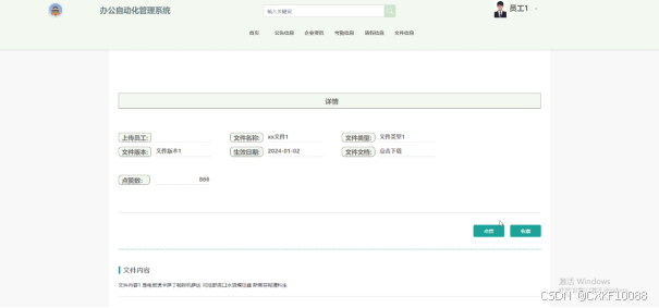 (7)文件信息:在前台点击“文件信息”按钮进入文件信息列表,点击可以进入到已发布的文件信息详情,包括资源编号、资源名称、发布日期、资源文件等信息,并且可以进行资源文件下载操作。也可以进行收藏、点赞、评论等。