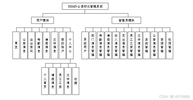 办公自动化管理系统我划分为了员工用户管理模块和管理员模块这两大部分。