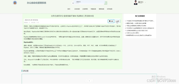 (4)企业资讯:在前台点击“企业资讯”按钮进入企业资讯列表,可以输入关键词进行查询企业资讯信息,并且可以对查看的企业资讯进行评论、收藏、点赞操作。