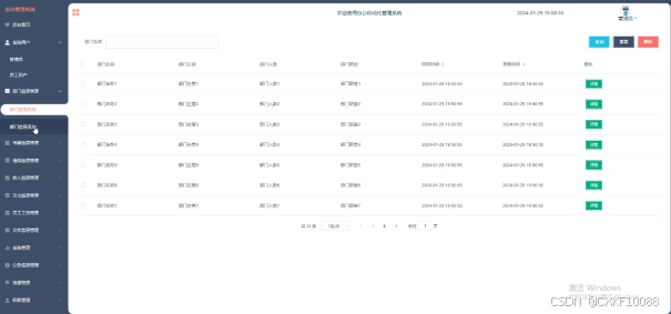 (3)部门信息管理:管理员点击“部门信息管理”菜单可以对企业的部门信息进行管理,也可以添加新的部门信息,输入部门名称、部门主管、部门人数、部门职责等信息完成提交。
