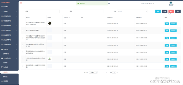 (12)资源管理:管理员点击“资源管理”菜单能够前台的企业资讯信息以及资讯所属的分类进行管控。
