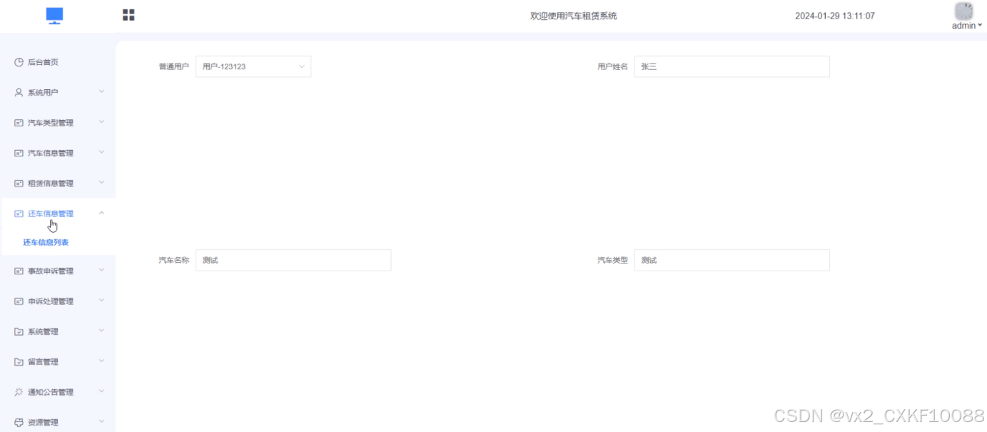 ● 还车信息:展示还车的相关信息,如还车时间、车辆状况等。