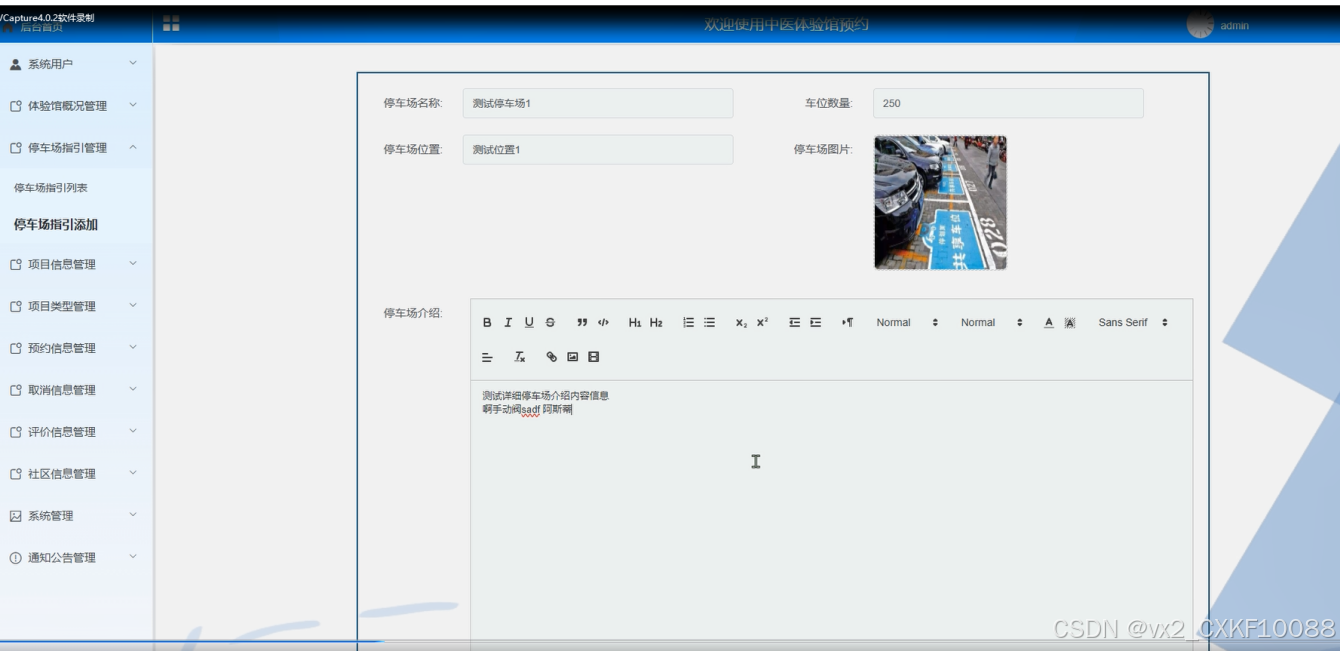 - 停车场指引管理:管理停车场的位置和导航信息。可以更新停车场的相关信息等。