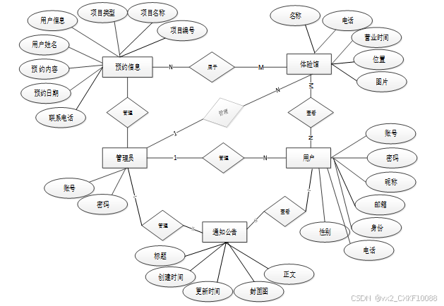 概念模型的设计是为了抽象真实世界的信息,并对信息世界进行建模。它是数据库设计的强大工具。数据库概念模型设计可以通过E-R图描述现实世界的概念模型。系统的E-R图显示了系统中实体之间的链接。而且Mysql数据库是自我保护能力比较强的数据库,下图主要是数据库实体的E-R图如图3-3所示:
