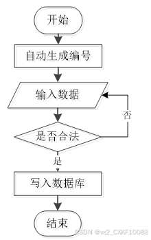 对于中医体验馆预约系统小程序,需要随时添加所需要的数据信息,对于用户添加信息,需要根据添加界面,根据选框的内容进行填写所要添加的数据信息,信息输入完成后判断数据信息是否符合要求,符合要求则添加完成,用户所添加的信息不符合要求,则需要返回到第一步,重新输入数据信息,再进行判断操作,如图2-3所示。
