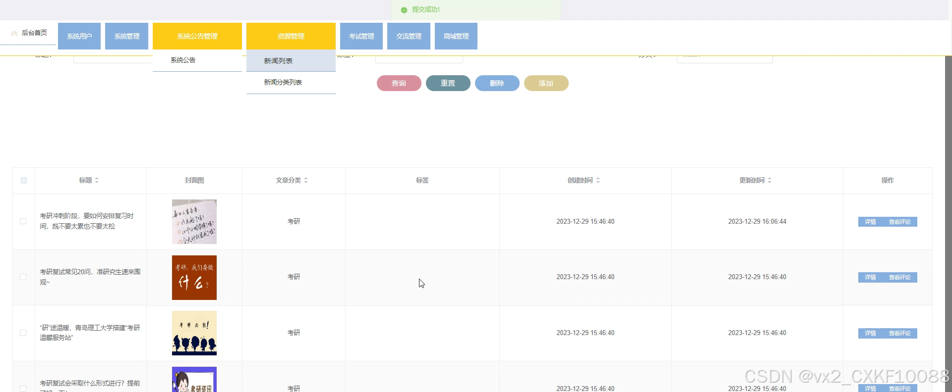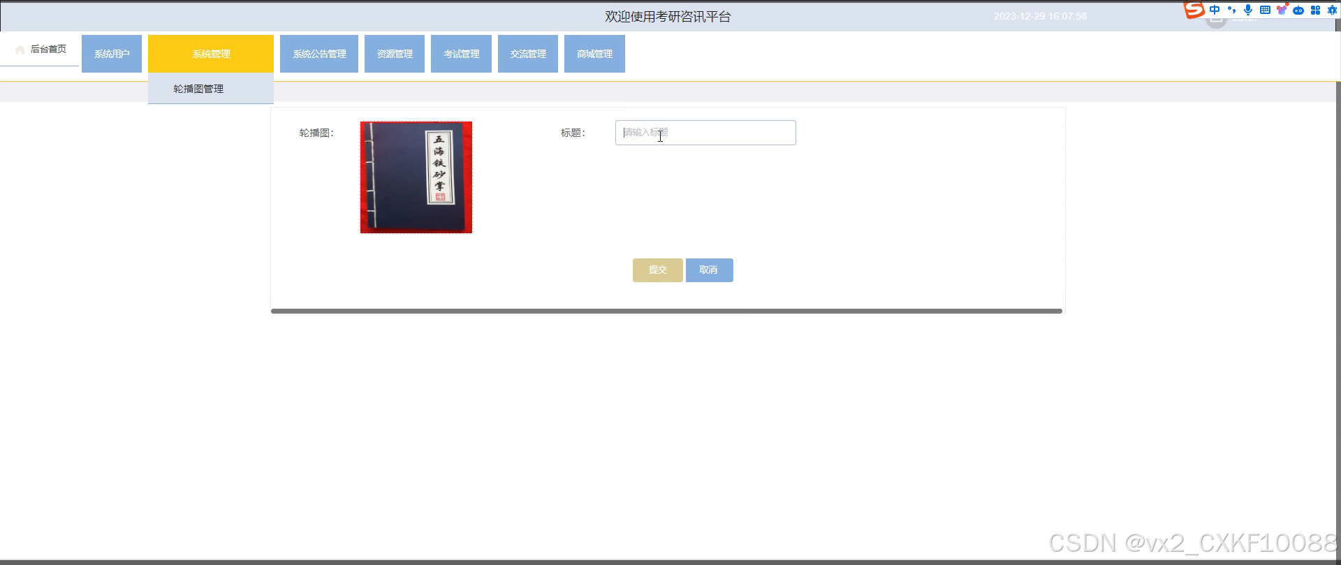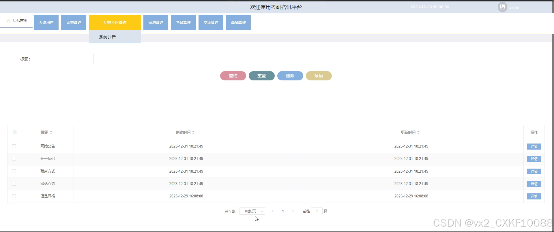 6.管理员功能,管理员可以对用户或者考研资料进行管理。