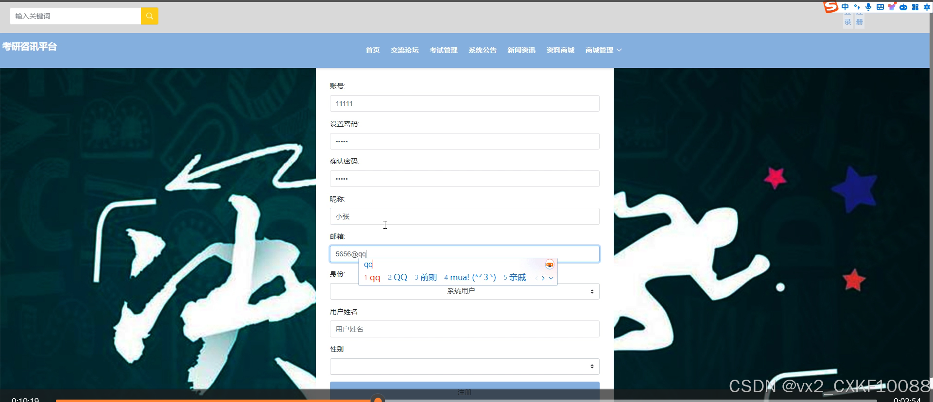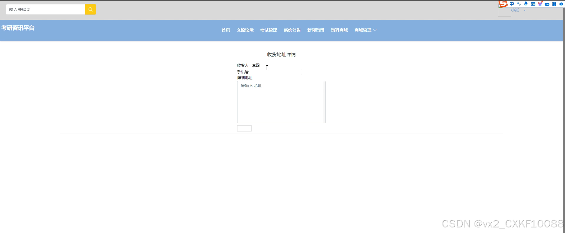 用户登录进入考研资讯平台可以查看首页、新闻资讯、系统公告、资料商城等内容,如图4-11所示。