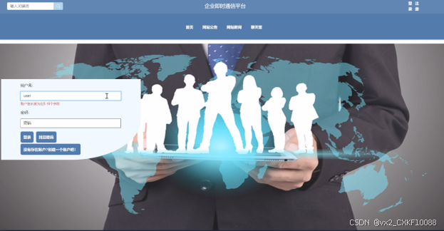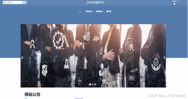 首页:在研究中,将设计和开发企业即时通信平台的首页,作为用户访问的入口和信息展示页面。首页将包括企业标识、导航菜单、登录入口等元素,提供用户友好的界面设计和导航功能,使用户能够快速了解平台的功能和特点。