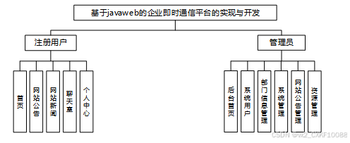 企业即时通信平台的功能分析包括注册用户和管理员两个角色。功能分析概述如下: