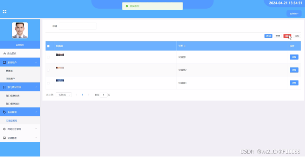 管理员进入系统管理界面,可以对轮播图进入增删改查操作。其界面如下图5-9所示。
