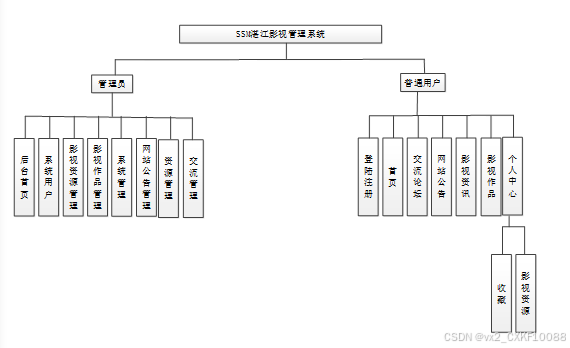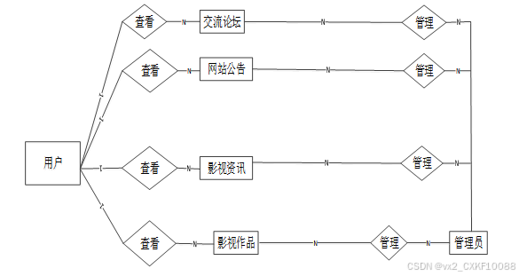 该管理系统采取B/S结构,并采取web网页交互的方法,利用MySQL来作为数据库,利用myeclipse来作为软件的程序设计语句。它的两大部分分别是:管理员和用户。管理者的功能有首页、系统用户、影视资源管理、影视作品管理、系统管理、网站公告管理、资源管理、交流管理;用户的功能有首页、交流论坛、网站公告、影视资讯、影视作品、个人中心(影视资源、收藏)。