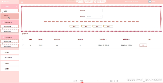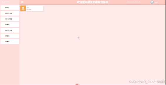 当成功注册并使用该系统时,将能够访问该平台的主要功能,包括:系统用户、影视资源管理、影视作品管理、系统管理、网站公告管理、资源管理、交流管理。详情请参见图5-7。