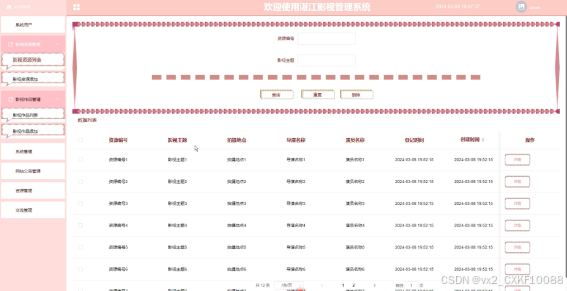 通过访问影视资源页面,管理员能够轻松地更新和编辑各种相关内容,包括但不限于:资源编号、影视主题、拍摄地点、导演名称、演员名称等,详情请参见图5-9。
