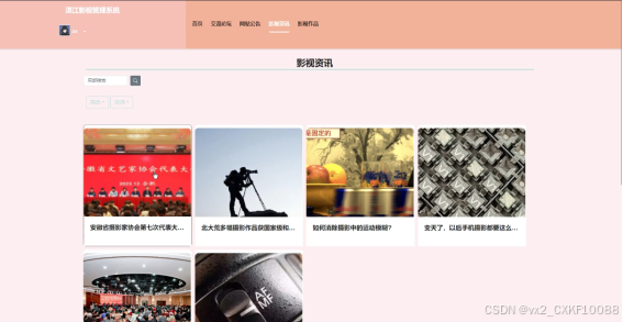 通过影视管理系统,用户可以轻松访问首页、交流论坛、网站公告、影视资讯、影视作品,如图5-1所示。