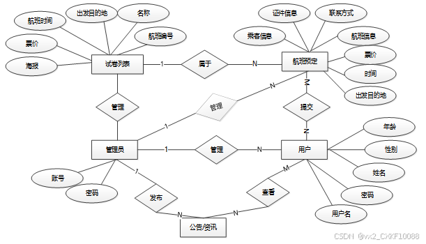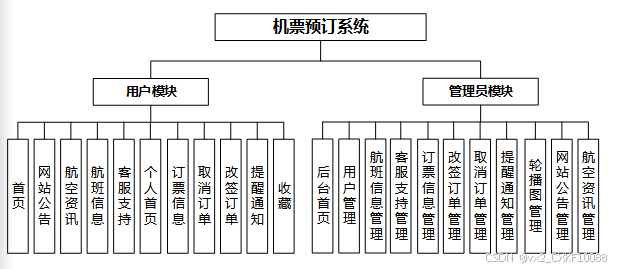 通过机票预订系统,实现注册用户功能包括网站首页展示热门航班、航空资讯等,航班信息包括预订、点赞、评论等,个人中心提供订票信息、订单管理等;管理员功能包括后台数据统计、用户管理、航班信息管理、客服支持管理、订单处理等,确保系统安全稳定运行。管理员管理各项功能,包括航班信息维护、客服支持管理、订单处理,提供用户个性化服务,保障航班信息的准确性和系统运行的高效性。具体功能分析如下: