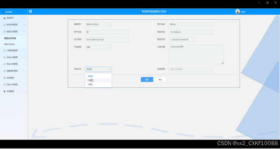 用户在线向客服人员提出问题、寻求帮助。用户可通过系统发起咨询请求,客服人员及时回复解答。客服人员能够提供专业的帮助和指导,解决用户疑问和问题,确保用户顺利使用系统和享受优质服务。界面如下图所示。