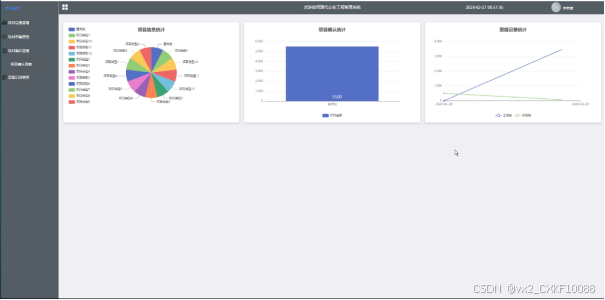 可查看项目信息统计、项目确认统计、票据记录统计等数据分析。其主界面展示如下图所示。