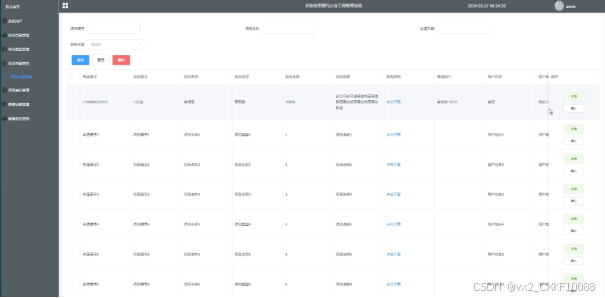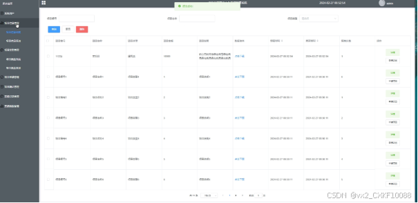 - 项目信息管理:可查看所有项目信息,进行增改删查操作,支持项目编号、项目名称、项目类型搜索,点击可查看详情,添加提交项目信息(项目编号、项目名称、项目类型、项目金额、项目说明、数据资料、详情介绍、限制次数)。